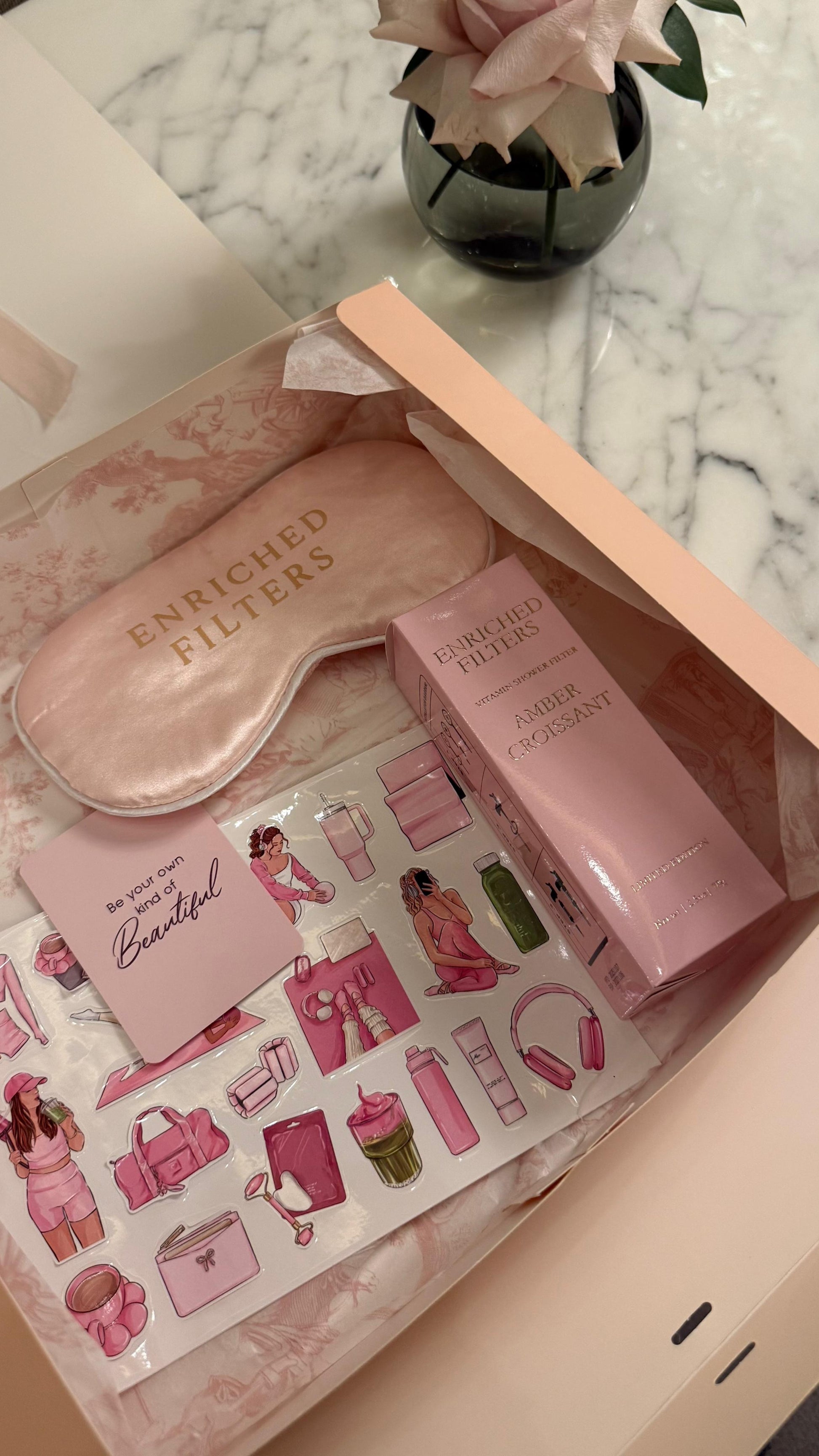 This silk sleep mask gently cushions the delicate eye area, helping reduce friction, protect your lashes, and support a deeper, more restful beauty sleep. The blush-pink finish with gold EF branding adds the perfect touch of dreamy luxury — made for the girl who adores her rituals.